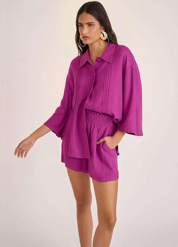 - Camisa Zinco Manga Curta com Botões Rosa Rosa