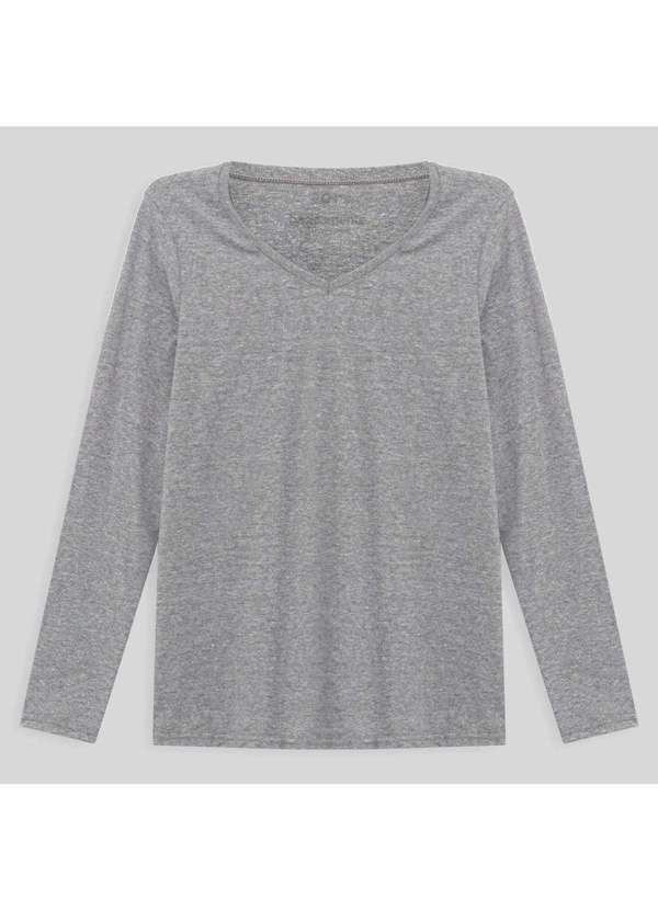 Basicamente - Camiseta Babylook Algodão Premium Gola V Manga Longa Plus Size Mescla Claro