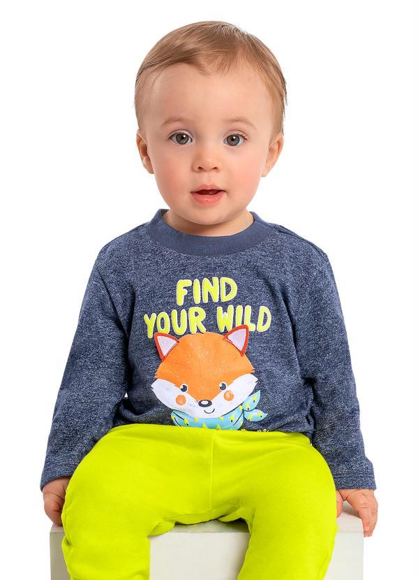 Quimby - Camiseta Bebê Manga Longa Botonê Azul
