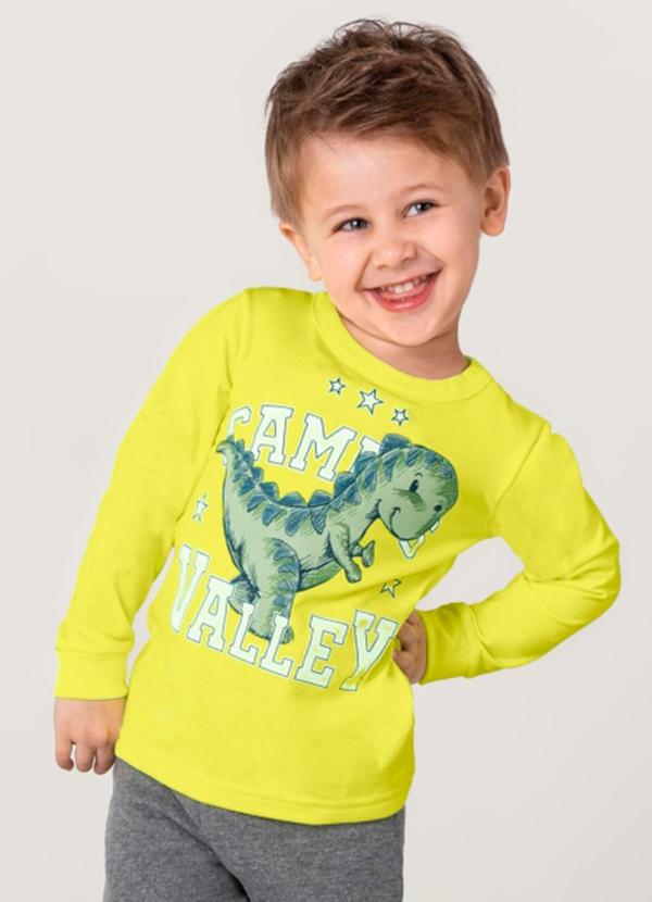 Brandili - Camiseta Dino Infantil Menino Amarelo