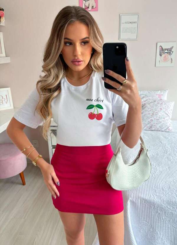 Cianitas - Camiseta Feminina Branca Cereja Mon Chéri - Branca