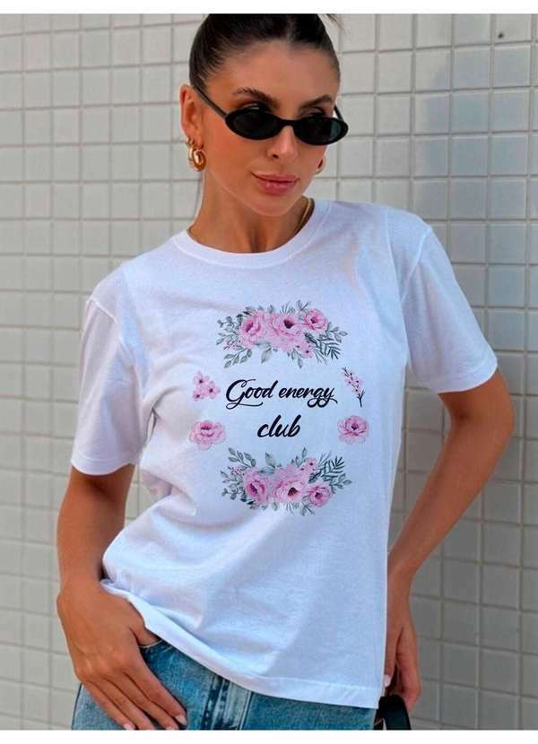 Cianitas - Camiseta Feminina Branca Rosas Good Energy - Branco