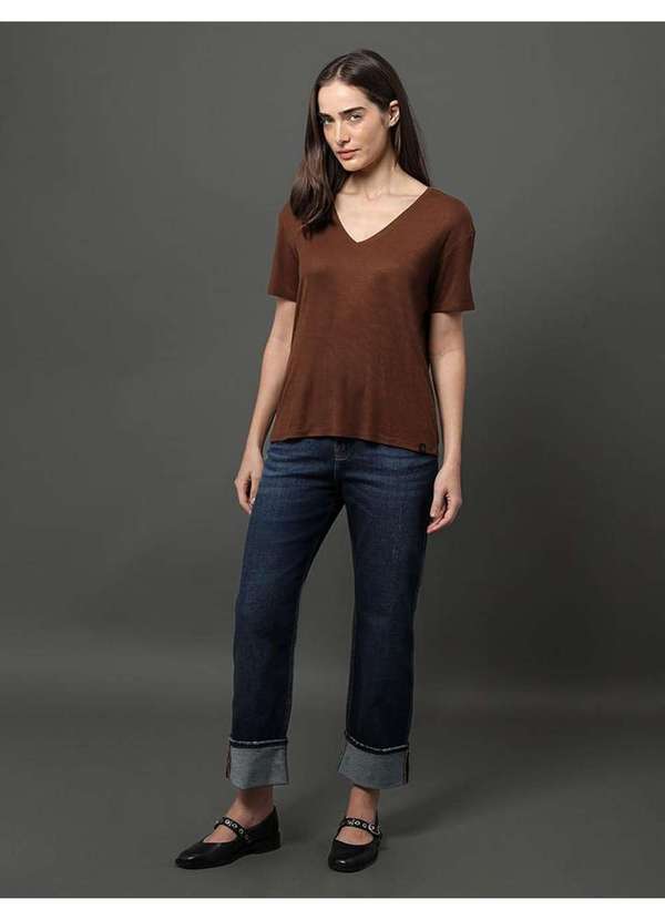 Calvin Klein Jeans - Camiseta Feminina Decote V Calvin Klein Jeans - Marrom Marrom
