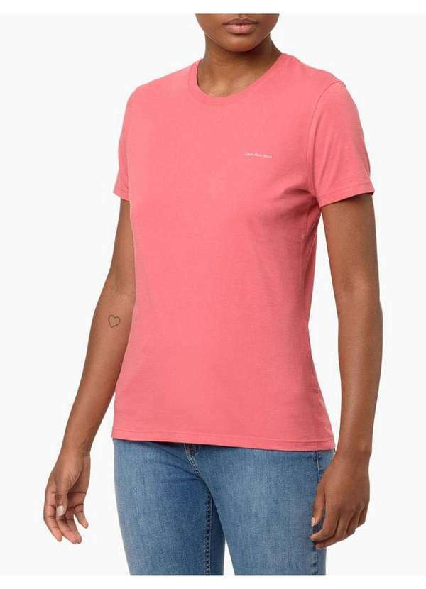 Calvin Klein Jeans - Camiseta Feminina Logo Básico Peito - Melancia Vermelho