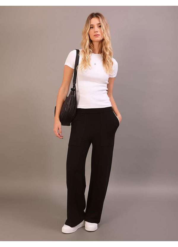 Camiseta de ribana Calvin Klein feminina, com logo bordado no peito. Ideal para o dia a dia, proporciona conforto e um toque sofisticado ao seu estilo.