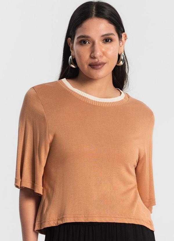 Rovitex - Camiseta Feminina Meia Malha Manga Fluída Marrom