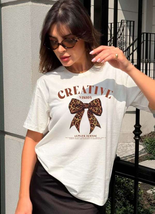 Cianitas - Camiseta Feminina Off Laço Animal Print - Off