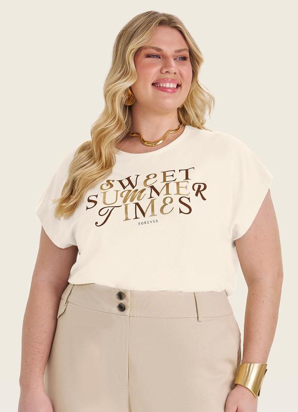 Secret Glam - Camiseta Feminina Plus Size Bege