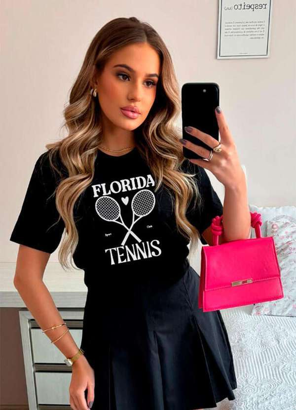 Cianitas - Camiseta Feminina Preta Tennis Florida - Preto