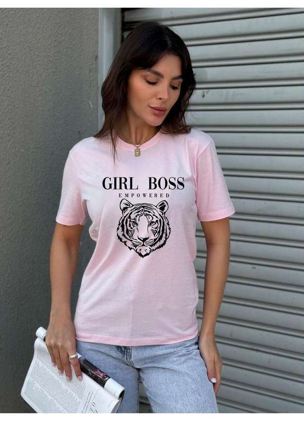 Cianitas - Camiseta Feminina Rosa Bebê Girl Boss - Rosa Bebe