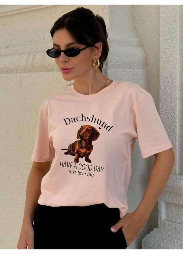 Cianitas - Camiseta Feminina Salmão Dachshund - Salmão