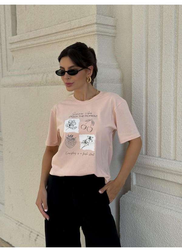 Cianitas - Camiseta Feminina Salmão Enjoy The Moment - Rose