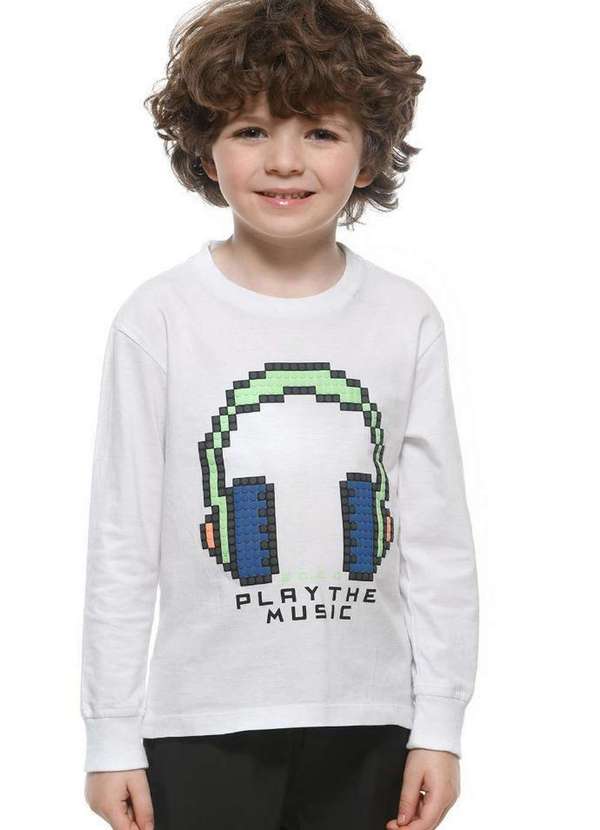 Camiseta Infantil Branca Play The Music Banana Danger. Gola Redonda, Manga longa, Tecido de algodão. Característica: Camiseta bem confortável, com desenho de fone e escrita Play The Music, elástico nas mangas para melhor ajuste. Sobre a marca: Perfeita para vestir seu bebê com estilo e criatividade.
