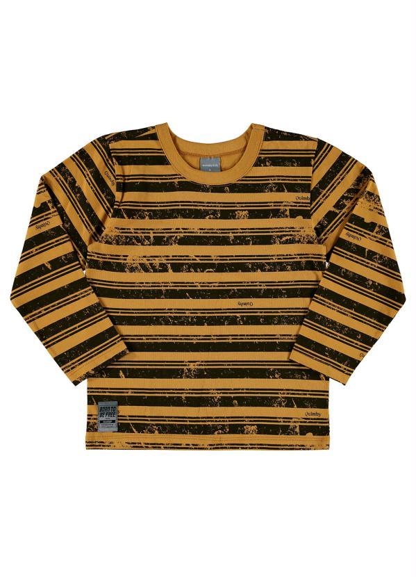 Quimby - Camiseta Infantil Manga Longa Listrada Marrom