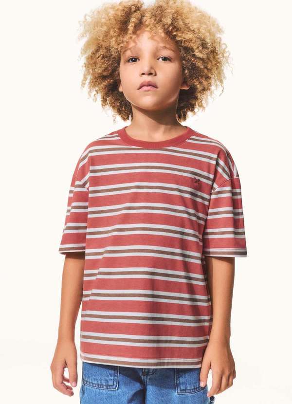Hering - Camiseta Infantil Menino Oversized com Patch Vermelho