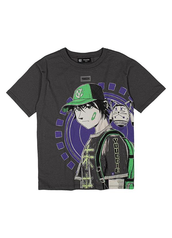 Youccie - Camiseta Manga Curta Estampa Menino Cinza