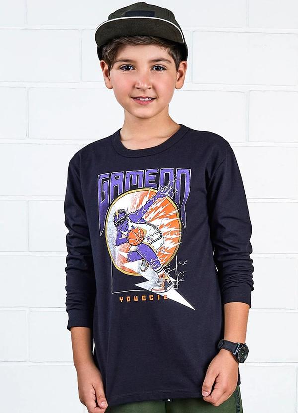 Youccie - Camiseta Manga Longa Estampa Monster Preta