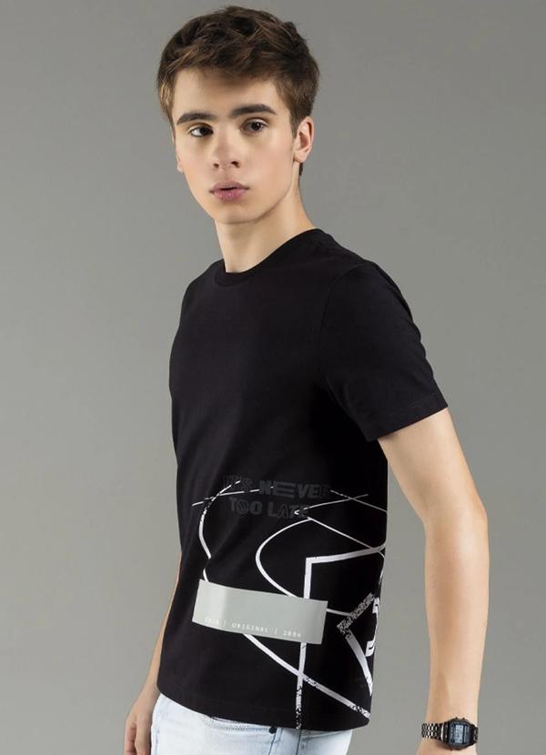 Exco - Camiseta Masculina Estampada com Relevo Fosco Preto
