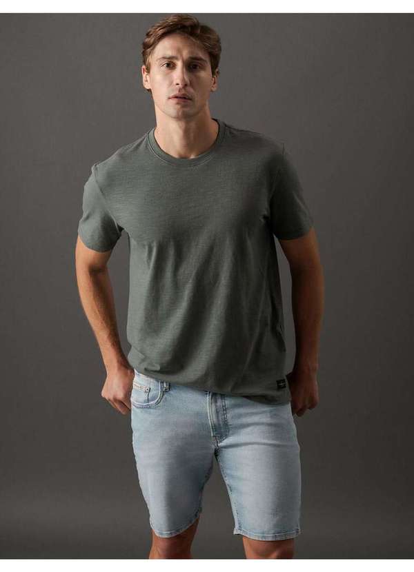 Calvin Klein Jeans - Camiseta Masculina Flamê com Etiqueta Calvin Klein Jeans - Verde Verde