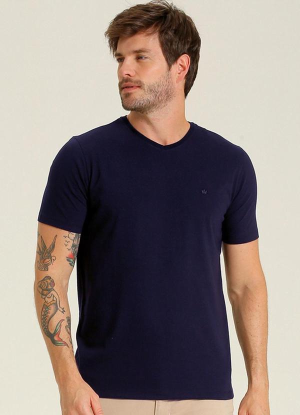 Seeder - Camiseta Meia Malha Decote V Slim Fit Azul