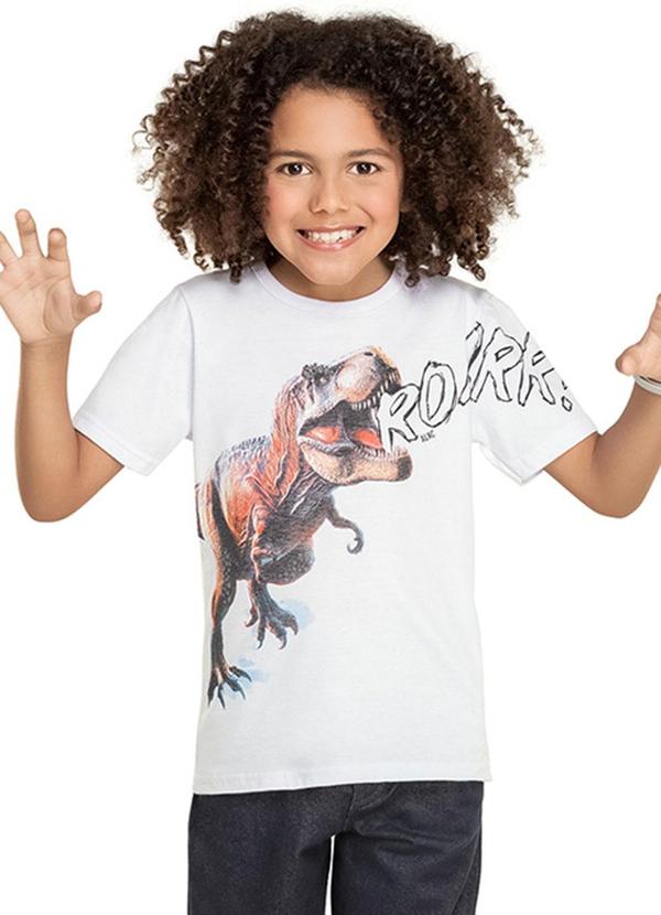 Alenice - Camiseta Meia Malha Roarr Meninos Branco
