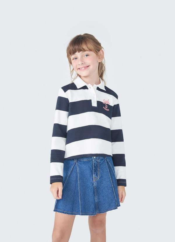Essa camiseta para menina em manga longa em modelagem polo é charmosa e confortável ao guarda-roupa infantil. Sua modelagem levemente solta ao corpo que oferece conforto e liberdade de movimento, enquanto a gola polo adiciona um toque elegante e diferenciado à peça. O peitilho é um detalhe clássico das camisetas polo, proporcionando um visual refinado e permitindo ajustar o decote conforme necessário. Feita em malha de algodão com estampa bordada no peito, tornando-a única e especial. Características da peça: Malha de algodão Modelagem comfort Gola polo Com bordado Listrada Versatilidade: Escolha versátil e elegante para as meninas que querem se vestir bem e com conforto. O material kids que preferimos: A malha de algodão é leve e proporciona toque macio ao vestir, além disso garante muito conforto e durabilidade.