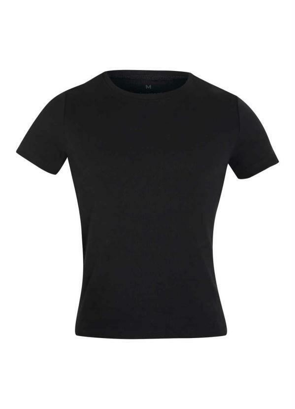 Outlet - Camiseta Preta em Ribana com Mangas Curtas