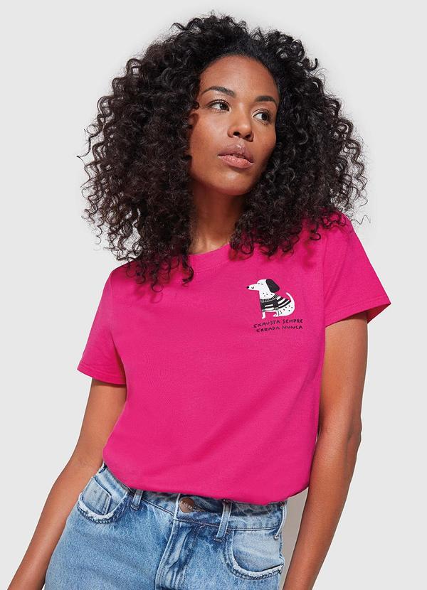 Enfim - Camiseta Slim Cachorrinho Rosa Escuro