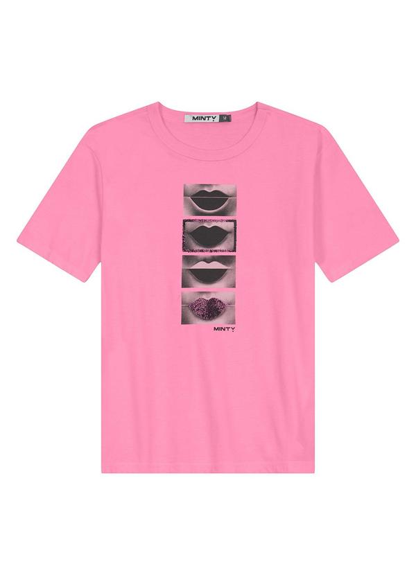 Minty - Camiseta T-Shirt Manga Curta em Meia Malha Rosa