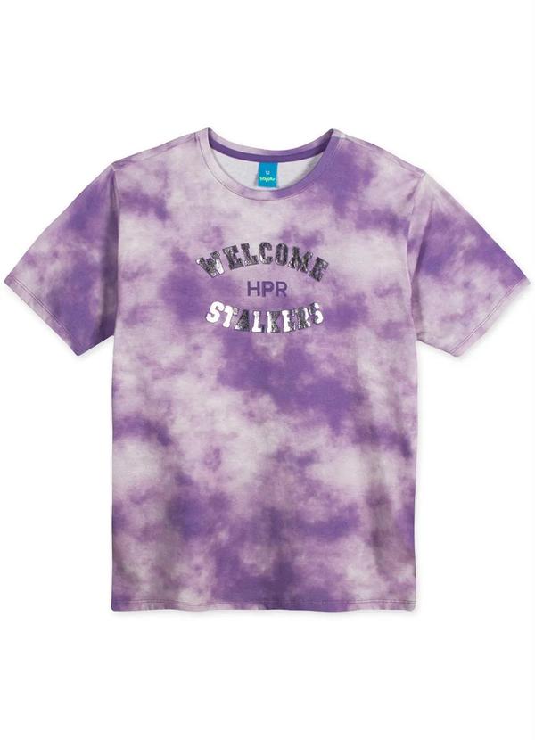 Hapier - Camiseta Tie-Dye Manga Curta Malha Menina Lilás