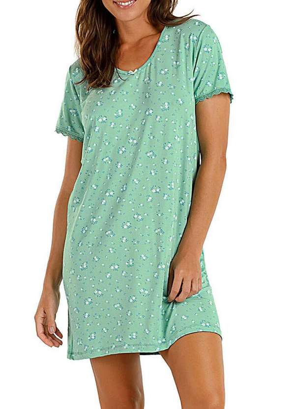 Características: Camisola feminina curta Confeccionada em malha comfy Mangas curtas com detalhe de renda delicada no acabamento Gola redonda Laço contrastante no decote Todo em estampa rotativa floral delicada Composição: 96% Viscose,04% Elastano