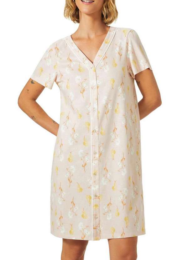 Características: Camisola curta feminina Possui estampa elaborada em malha de algodão Possui shape soltinho e comprimento um pouco acima dos joelhos Modelagem regular Manga curta e decote em V Vista com botões Composição: 100% Algodão