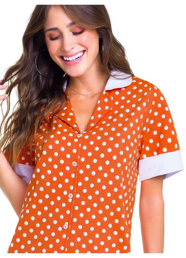 A Camisola manga curta é confeccionada em malha penteada de puro algodão e vai bem a qualquer estação do ano! Com abertura de botões possui estampa de poás.
