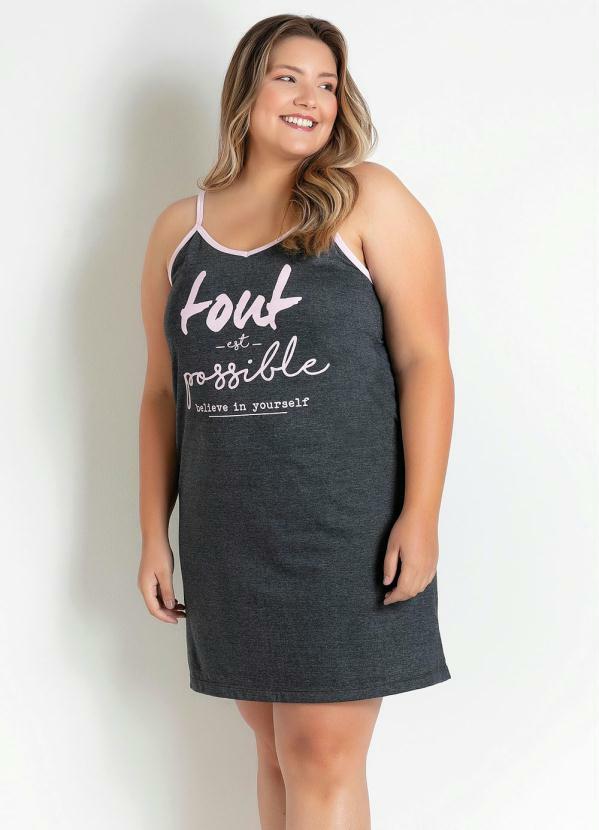 Marguerite - Camisola Plus Size de Alças Finas Chumbo e Rosa