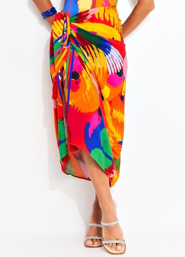 Canga de praia com estampa vibrante Festa das Araras, confeccionada em tecido plano de viscose, leve e macio. Possui detalhes de tassel nas pontas, que dão um toque de charme e descontração. Perfeita para compor looks tropicais e usar como saída estilosa nos dias de praia. Tamanho Único. Medidas: Largura 295 cm x Altura 135 cm x Comprimento 295 cm.