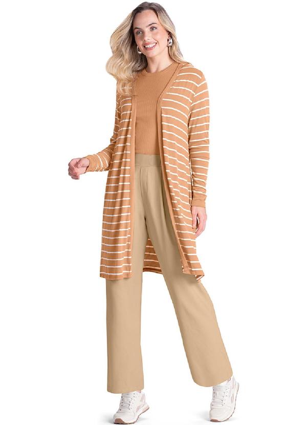Rezzato - Cardigan Alongado Listrado Feminino Marrom