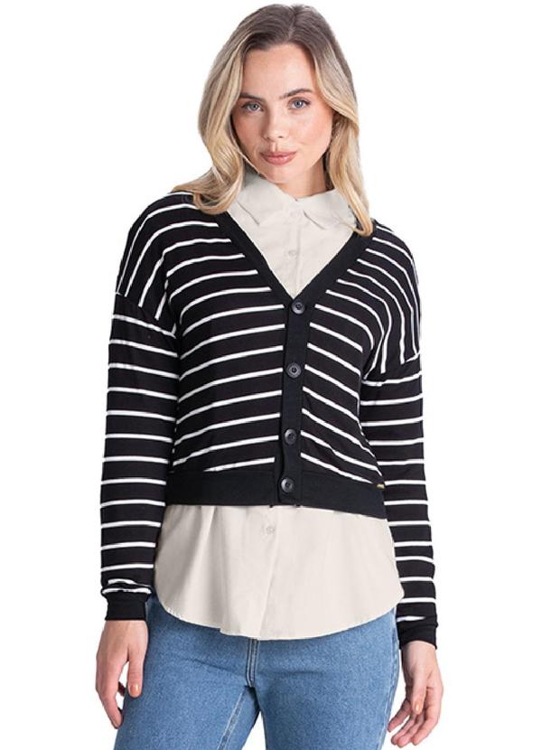 Rezzato - Cardigan Curto Listrado Feminino Preto