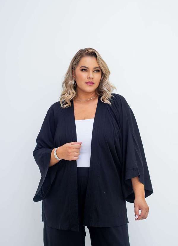 Mais na Moda Plus - Cardigan/ Kimono Feminino de Viscolinho Chic Preto - Preto