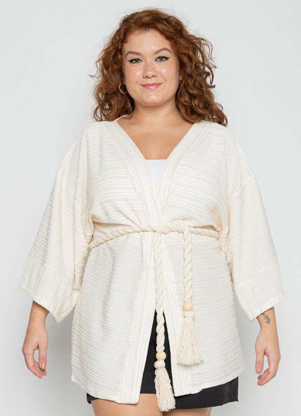 Mais na Moda Plus - Cardigan/Kimono Plus Size de Tricot Bege Feminino - Off