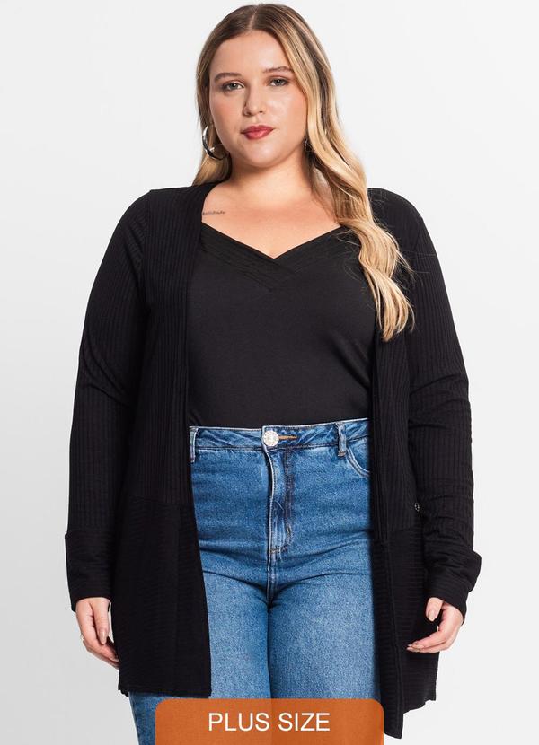 Secret Glam - Cardigan Plus Size em Ribana Canelada Preto