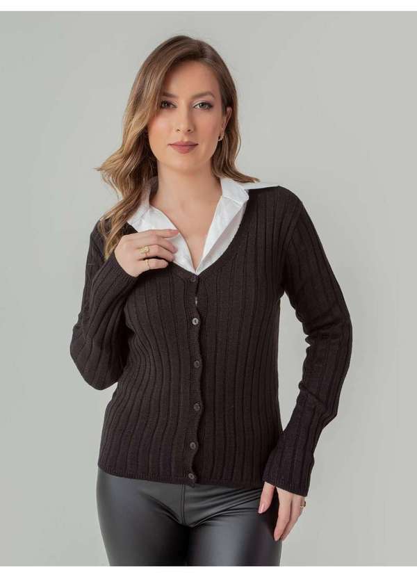 Susie Modas - Cardigan Susie Modal Canelado Feminino Preto