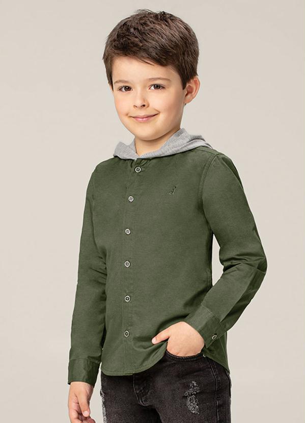 Carinhoso - Camisa Verde em Sarja com Capuz