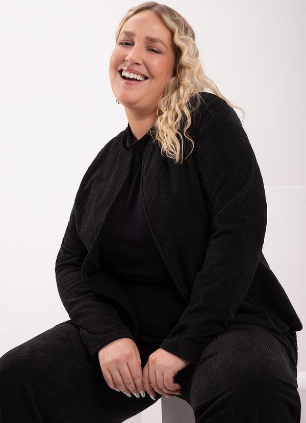 Lunender Mais Mulher - Casaco com Lapelas em Tecido de Veludo Preto