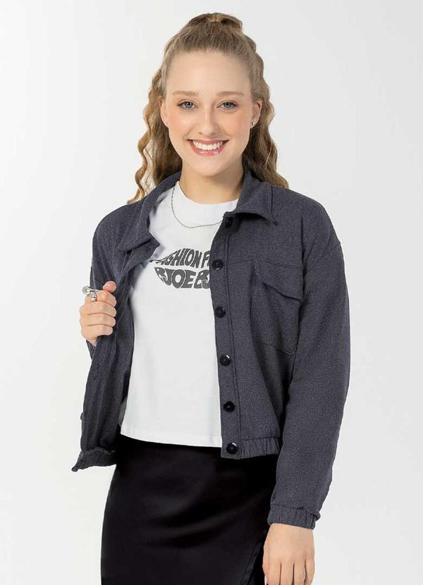 Bjoe - Casaco Feminino Canelado com Botões Cinza