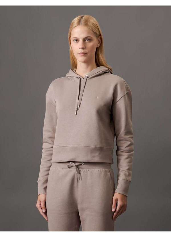 CASACO CALVIN KLEIN JEANS FEMININO DE MOLETOM COM FELPA. MODELAGEM CROPPED COM CAPUZ E PUNHOS DE RIBANA. LOGO BORDADO EXCLUSIVO DA MARCA NO PEITO.