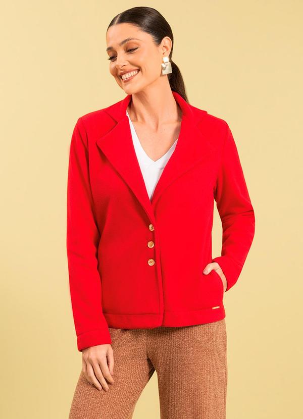 Cativa - Casaco Feminino Soft com Bolso Vermelho
