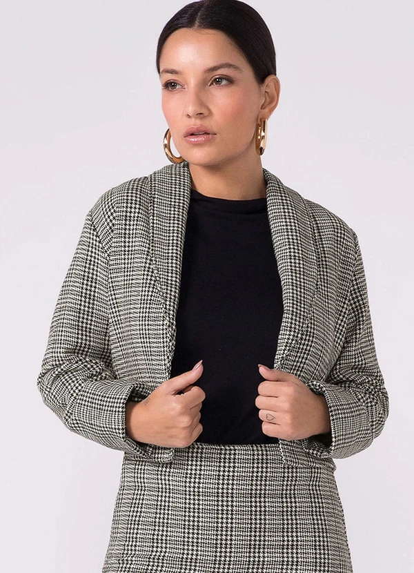 Marialícia - Casaco Feminino Tweed Xadrez Preto