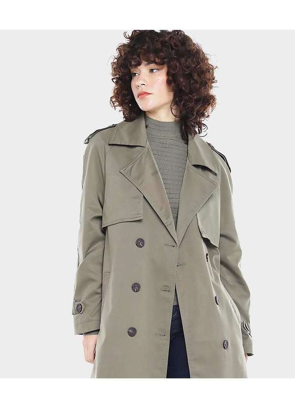 Sob - Casaco Trench Coat Forrado com Bolso e Cinto - Verde