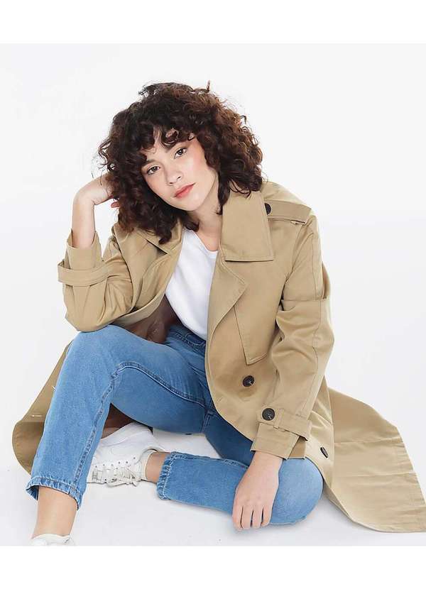 Cor: Kaki. Detalhes: Casaco trench coat clássico, comprimento até o joelho, estilo sobretudo. Mangas raglã. Pala sobreposta frente e costas, dos dois lados. Barra reta com abertura traseira. Corpo e mangas inteiro forrado. Botões marrom marmorizado, abotoamento duplo. Bolsos na altura do quadril verdadeiros. Passantes lateral e traseiro para cinto, cinto solto com fivela marmorizada. Martingale (tira) nos ombros com botão e nos punhos para ajuste. Tecido pesado, sarjado, modelagem solta. Modelagem: Padrão. Bolsos: Verdadeiros. Modelo com 170 cm de altura, busto 82 cm, cintura 66 cm, quadril 92cm, usando P. casaco feminino, trench coat feminina, casaco feminino chic, look elegante, casaco de frio, casaco de inverno, sobretudo de inverno , casaco chic, casaco para trabalhar, casaco social feminino, casaco elegante, look elegante, trench coat fino,casaco bege, sobretudo bege, sobretudo clássico. Cor: Kaki. casaco feminino, trench coat feminina, casaco feminino chic, look elegante, casaco de frio, casaco de inverno, sobretudo de inverno , casaco chic, casaco para trabalhar, casaco social feminino, casaco elegante, look elegante, trench coat fino,casaco bege, sobretudo bege, sobretudo clássico. .