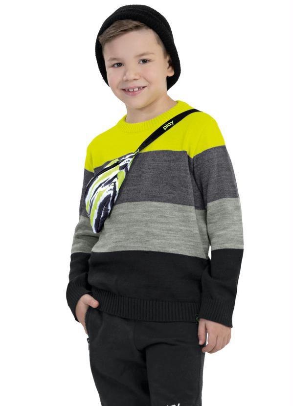 Observação: recortes horizontais em blocos de cores - canelado no decote, punho e barra, etiqueta decorativa na barra